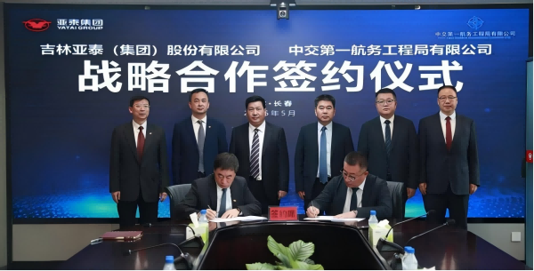 2025年5月13日下午,亚泰集团与中交第一航务工程局有限公司签署战略合作协议。亚泰集团党委书记、董事长陈铁志,中交一航局党委副书记、总经理殷天军见证签约;亚泰集团副董事长、总裁刘树森同中交一航局国内市场部总经理张永签约。